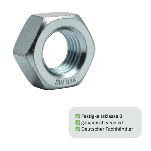 - ✔ Norm: DIN 934 / ISO 4032 (aktuelle Norm)