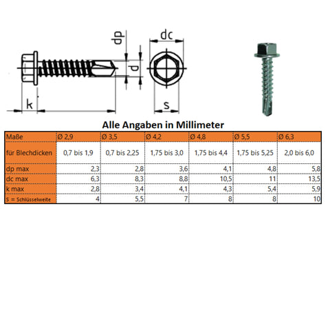 Maße St 2,9 St 3,5 St 4,2 St 4,8 St 5,5 St 6,3 f. Blechdicken 0,7 bis 1,9 0,7 bis 2,25 1,75 bis 3,0 1,75 bis 4,4 1,75 bis 5,25 2,0 bis 6,0 dp max 2,3 2,8 3,6 4,1 4,8 5,8 dc max 6,3 8,3 8,8 10,5 11,0 13,5 k max 2,8 3,4 4,1 4,3 5,4 5,9 s 4,0 5,5 7,0 8,0 8,0 10,0 Ihre Vorteile: